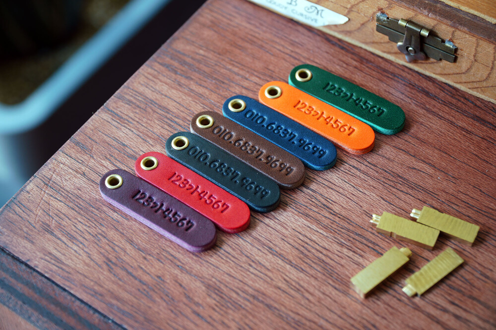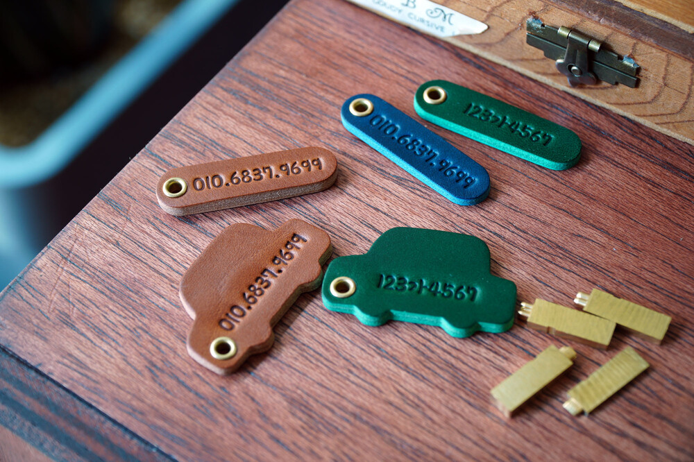 자동차 번호 or 연락처를 각인할 수 있는 가죽 라벨