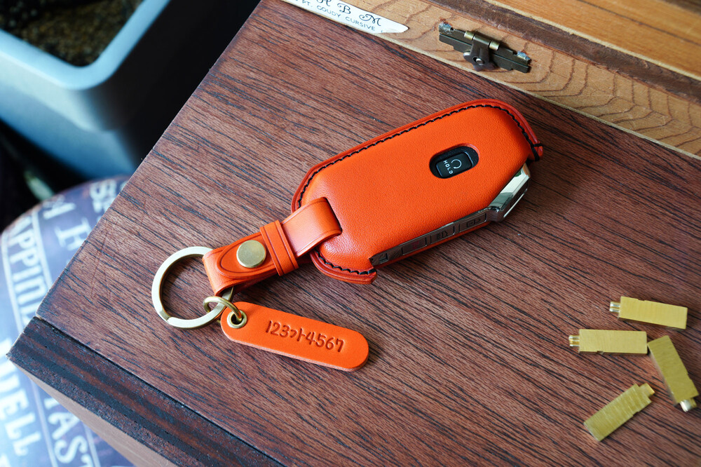 반다레더 스튜디오 스마트키 케이스와 같은 가죽으로 제작한 타원, 자동차 모양의 라벨입니다. 스마트키 케이스의 황동 키링에 걸어 사용할 수 있는 라벨로, 자동차 번호 or 연락처를 각인할 수 있습니다. 한가지만 각인이 가능합니다.