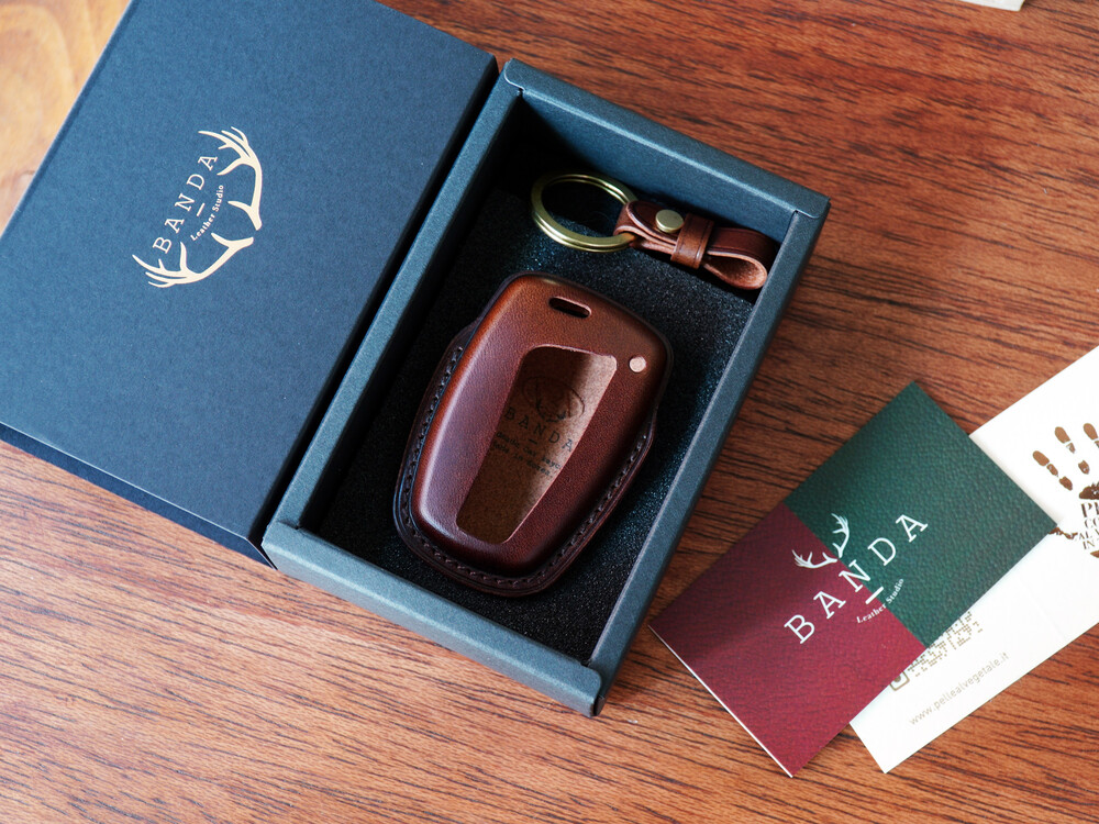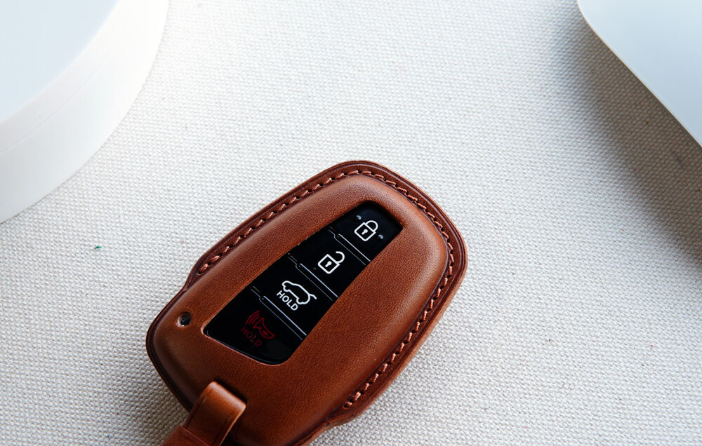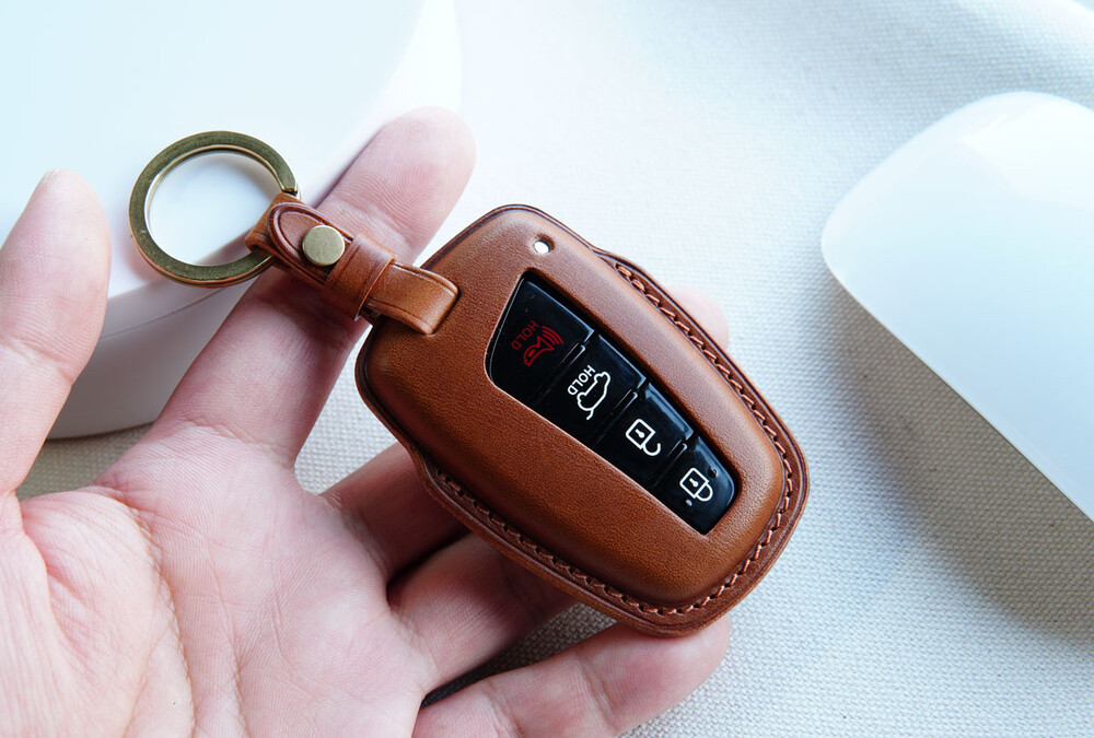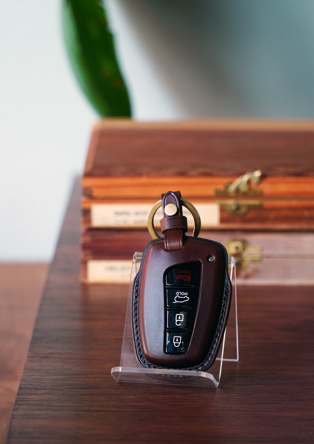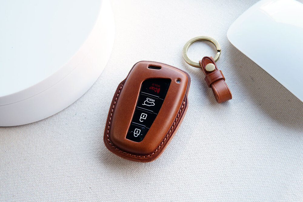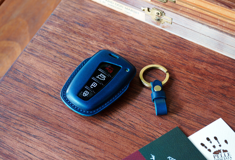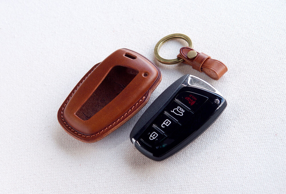 현대 그랜저HG 싼타페DM 에쿠스 아슬란 등.. 스마트키 가죽케이스 입니다. 가죽 성형 기법을 통해서 스마트키와 동일한 모양으로 제작하여 맞춤 옷을 입은 듯 스마트키에 딱 맞게 들어가서 안정된 그립감과 핏감을 느낄 수 있습니다. 제작에 사용된 가죽과 부자재는 Art.Buttero 베지터블 가죽과 황동입니다. 고급스런 부테로 가죽과 황동 장식은 가죽제품의 본질을 잘 살려주는 소재의 조합으로 사람이 나이가 들듯 에이징 되어가는 가죽과 황동은 세상에 하나뿐인 나의 애장품으로 만들어 줄 것 입니다.
