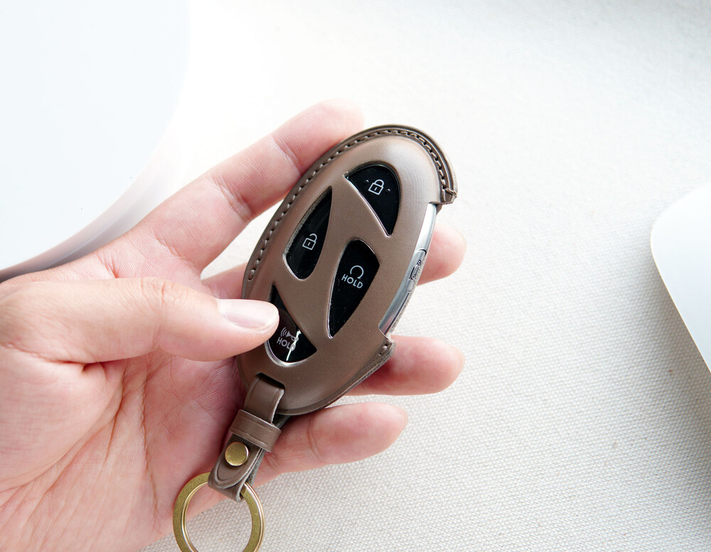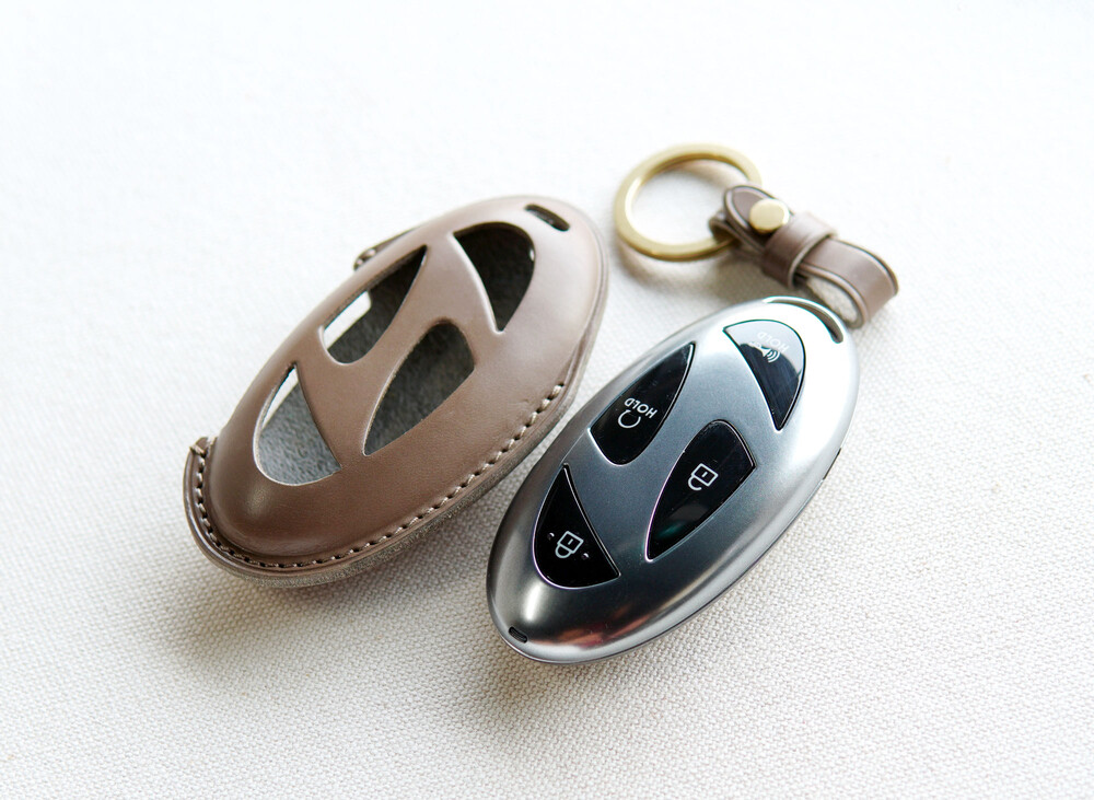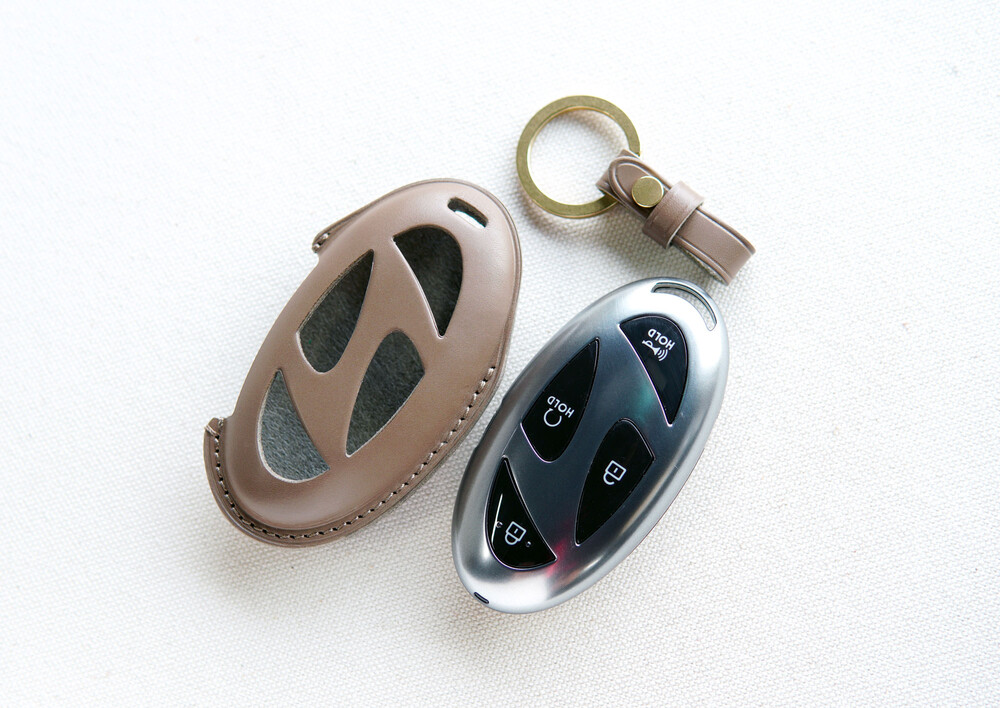 현대 아이오닉6 GN7그랜저 코나 아반떼 등.. 스마트키 가죽케이스 입니다. 가죽 성형 기법을 통해서 스마트키와 동일한 모양으로 제작하여 맞춤 옷을 입은 듯 스마트키에 딱 맞게 들어가서 안정된 그립감과 핏감을 느낄 수 있습니다. 제작에 사용된 가죽과 부자재는 Art.Buttero 베지터블 가죽과 황동입니다. 고급스런 부테로 가죽과 황동 장식은 가죽 제품의 본질을 잘 살려주는 소재의 조합으로 사람이 나이가 드는 것처럼 에이징 되어가는 가죽과 황동은 세상에 하나뿐인 나의 애장품으로 만들어 줄 것입니다.