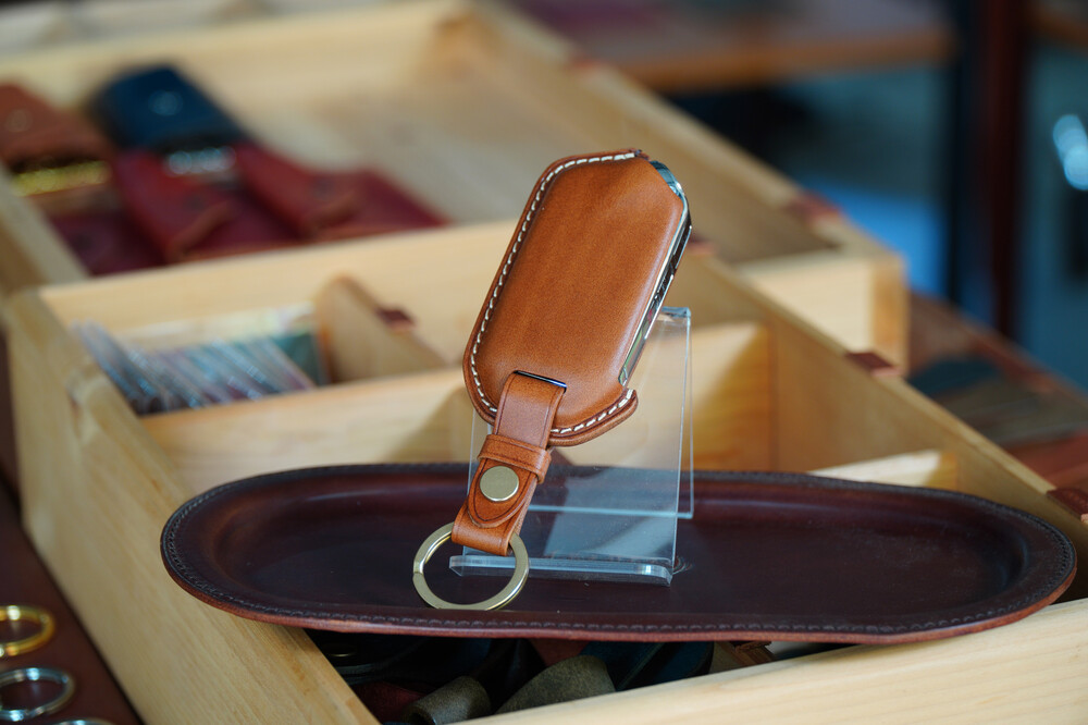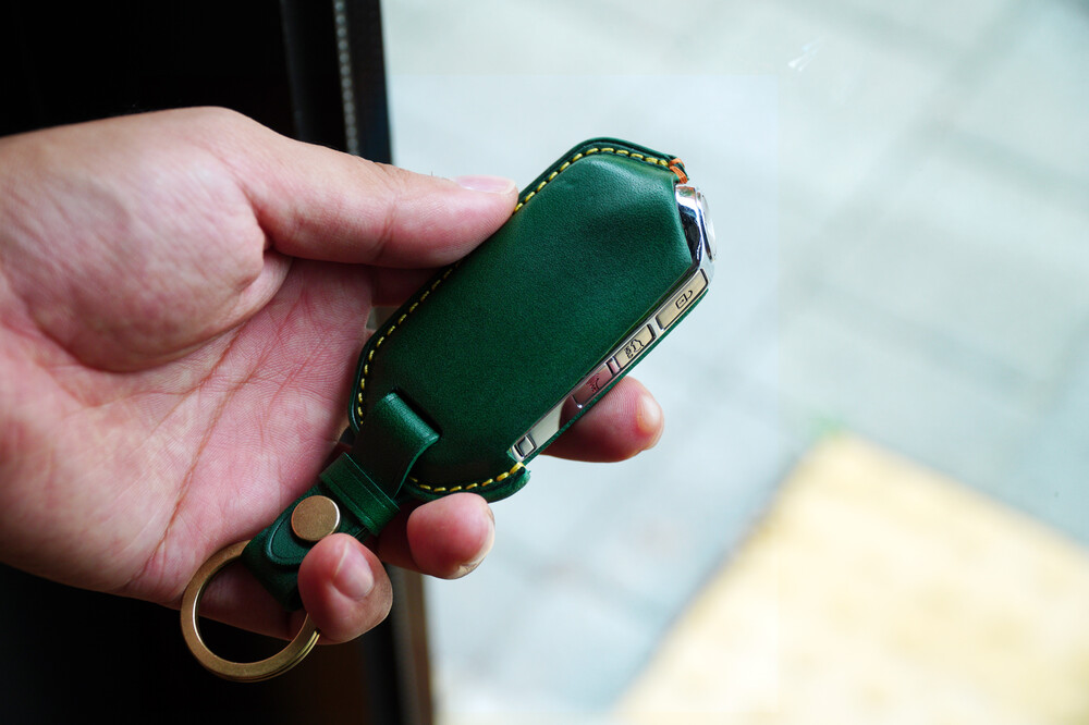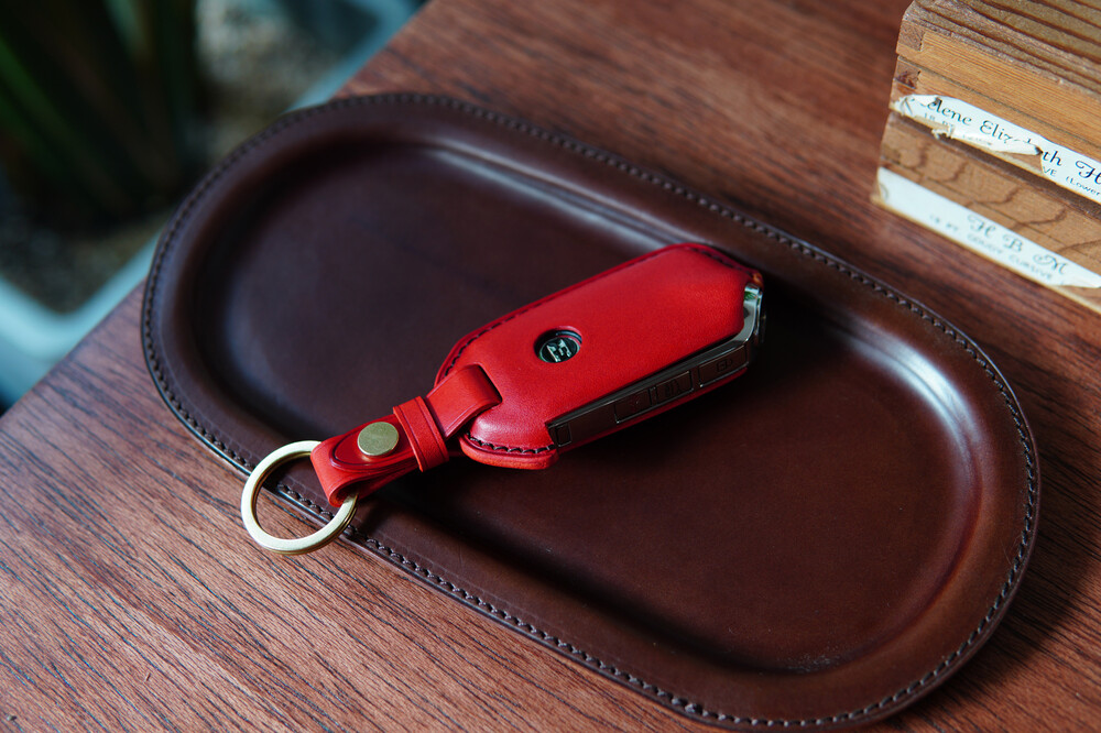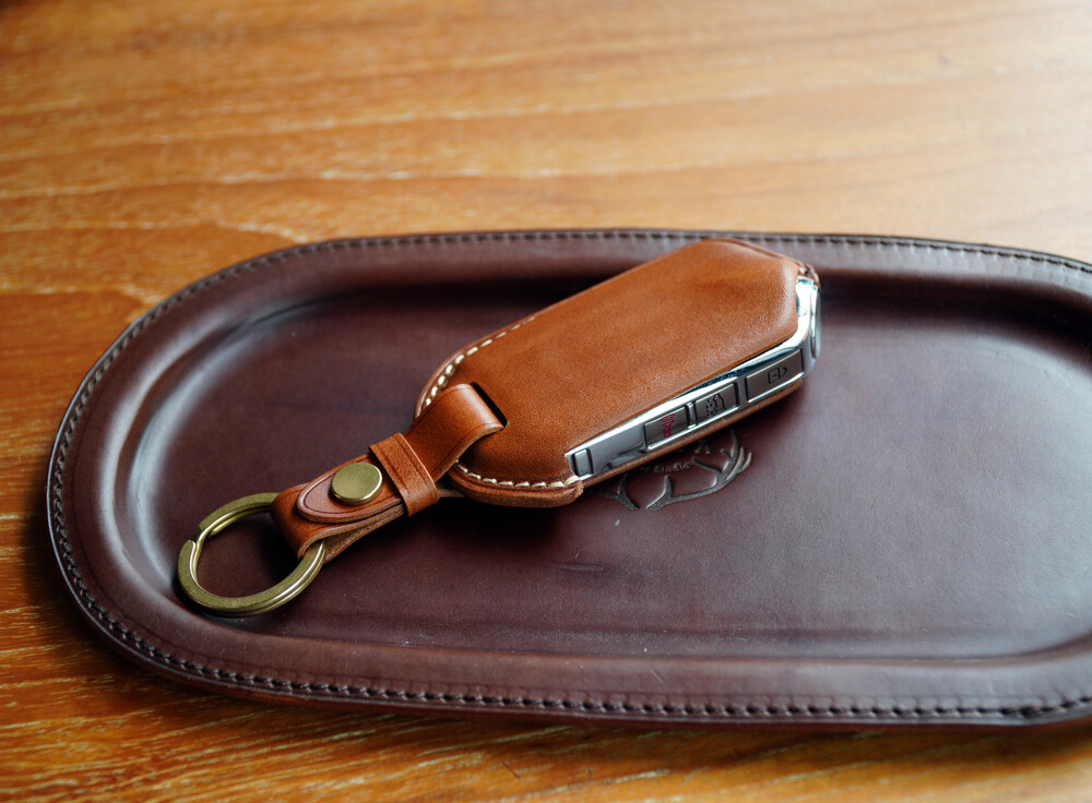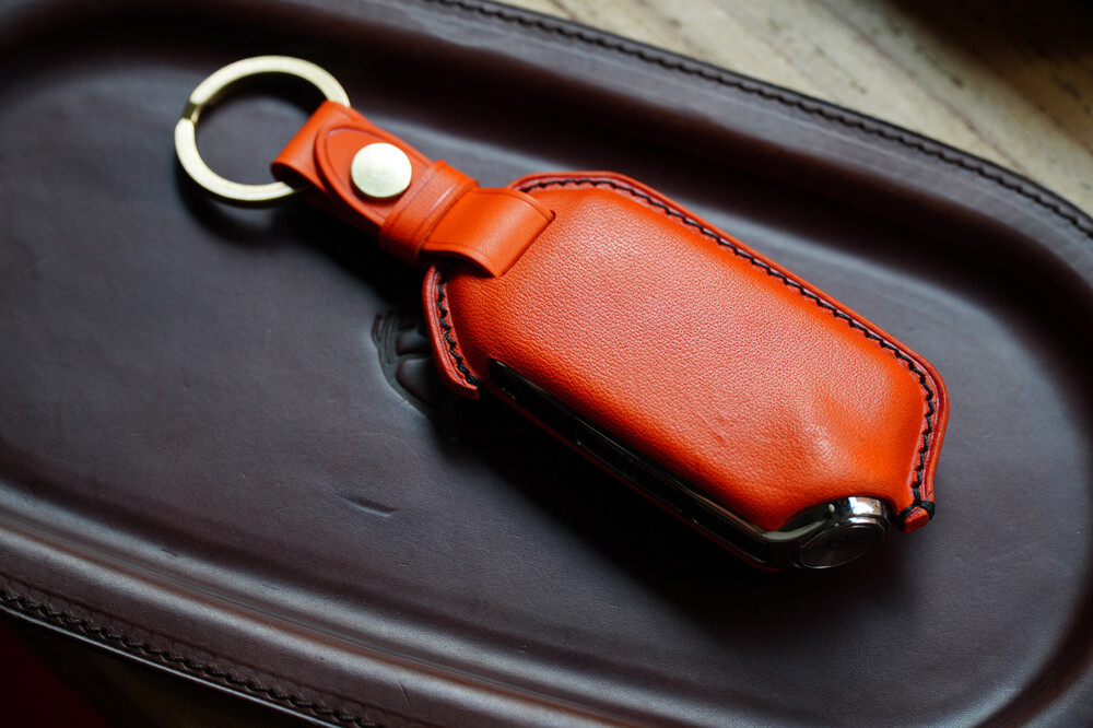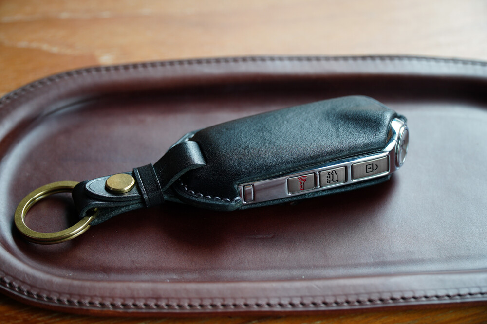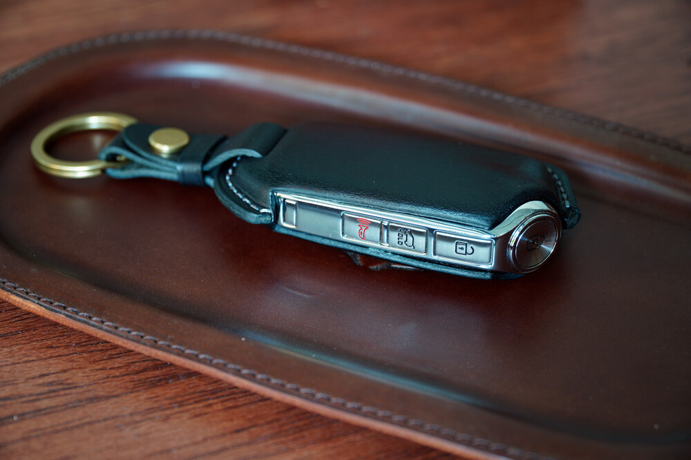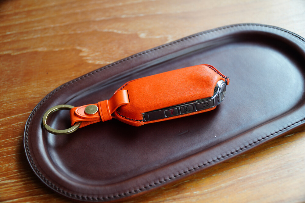 기아 옆버튼 스마트키 가죽케이스 입니다. 가죽 성형 기법을 통해서 스마트키와 동일한 모양으로 제작하여 맞춤 옷을 입은 듯 스마트키에 딱 맞게 들어가서 안정된 그립감과 핏감을 느낄 수 있습니다. 제작에 사용된 가죽과 부자재는 Art.Buttero 베지터블 가죽과 황동입니다. 고급스런 부테로 가죽과 황동 장식은 가죽 제품의 본질을 잘 살려주는 소재의 조합으로 사람이 나이가 드는 것처럼 에이징 되어가는 가죽과 황동은 세상에 하나뿐인 나의 애장품으로 만들어 줄 것입니다.