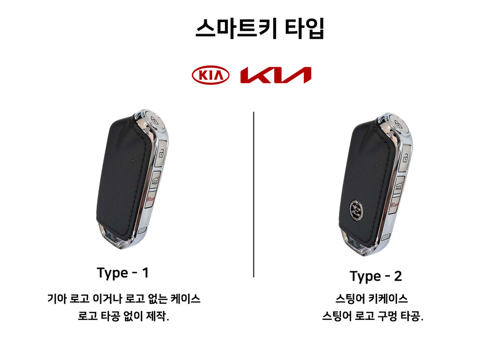 기아 자동차 스팅어, K9 키는 2가지 타입으로 나뉘어집니다. 주문시 옵션에서 스마트키의 타입에 맞게 주문하실 수 있습니다. 두 타입의 차이는 스팅어 로고 및 타공 차이입니다. Type-1의 경우 로고부분이 가려져 제작되고, Type-2의 경우 스팅어로고이면서 원형 타공이 되어 제작하는 타입니다. 두가지 스마트키 모두 사용 가능합니다. 스팅어 스마트키도 로고를 가리고 싶다면 Type-1으로 선택하시면 됩니다.