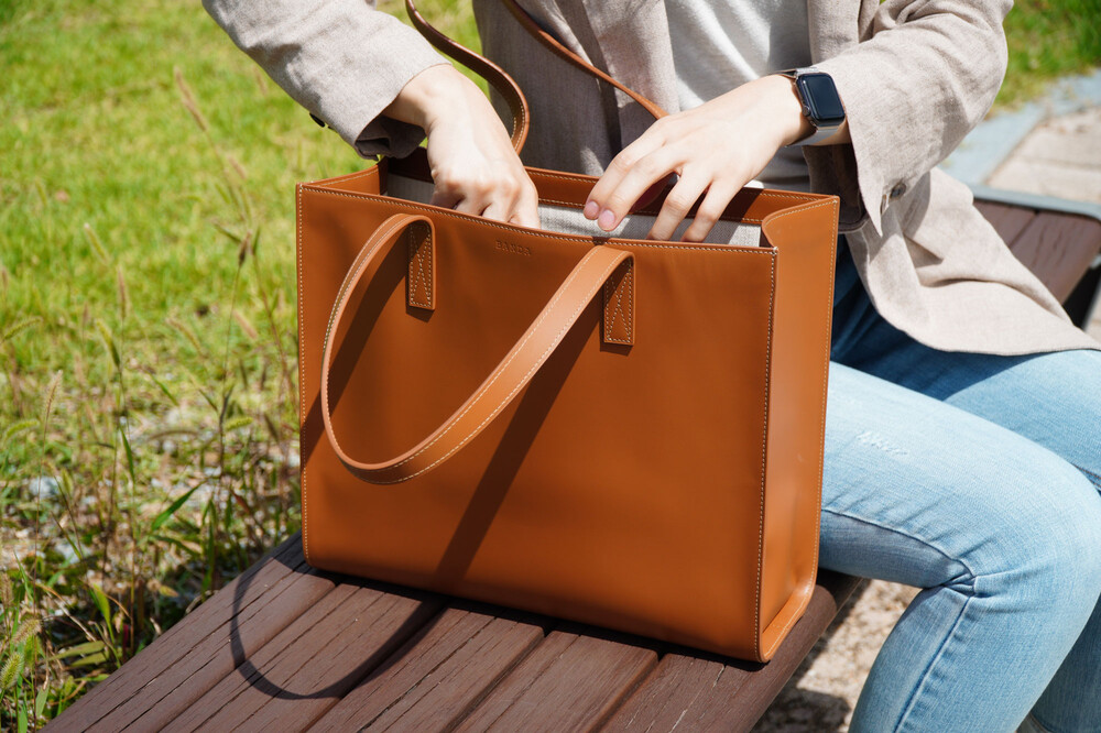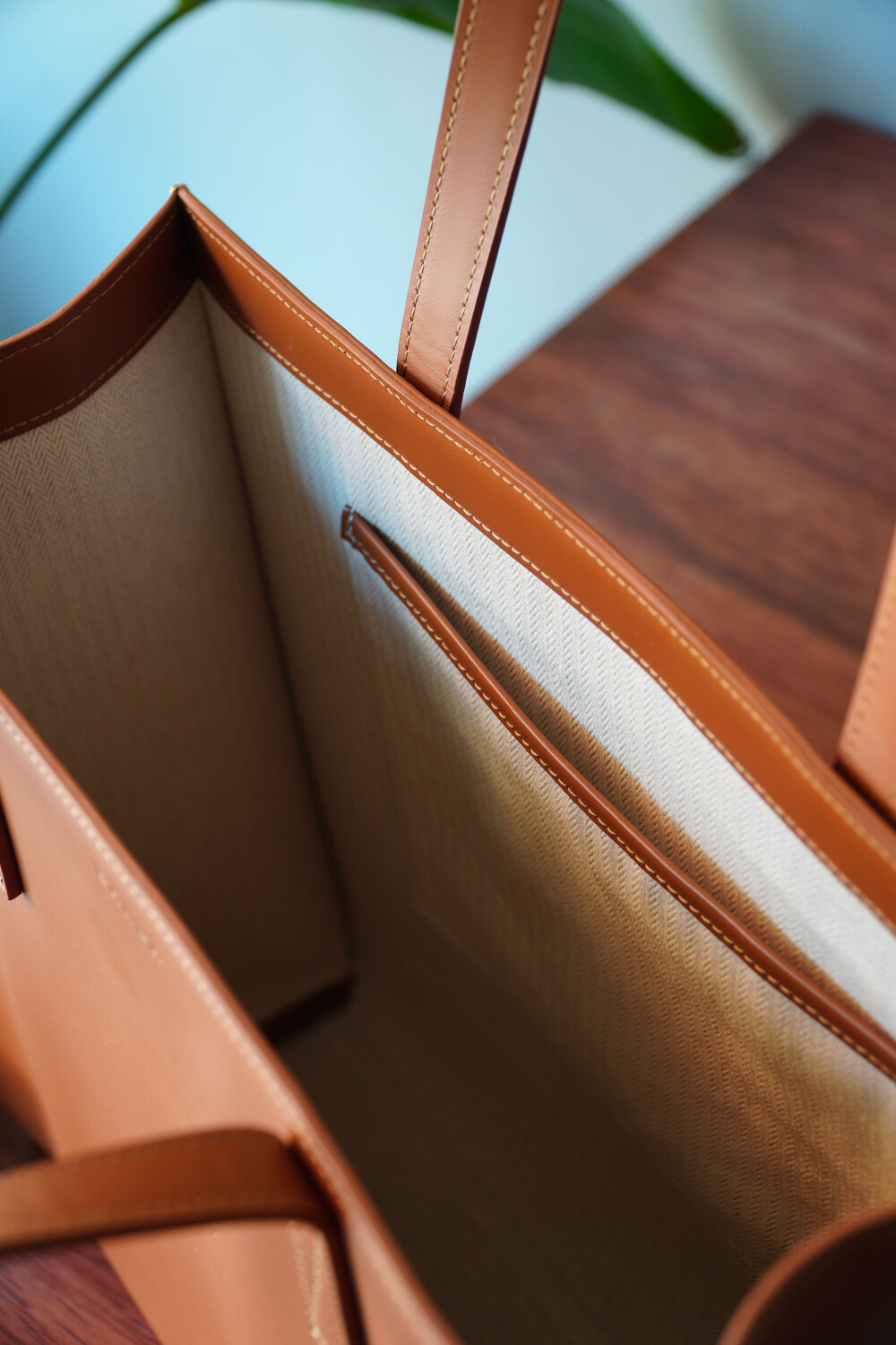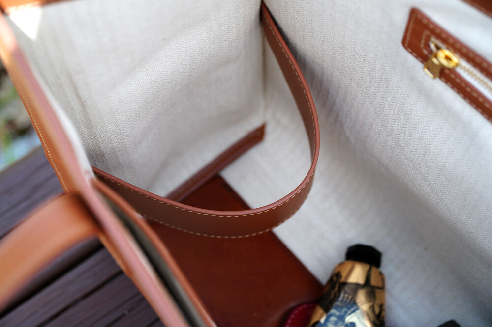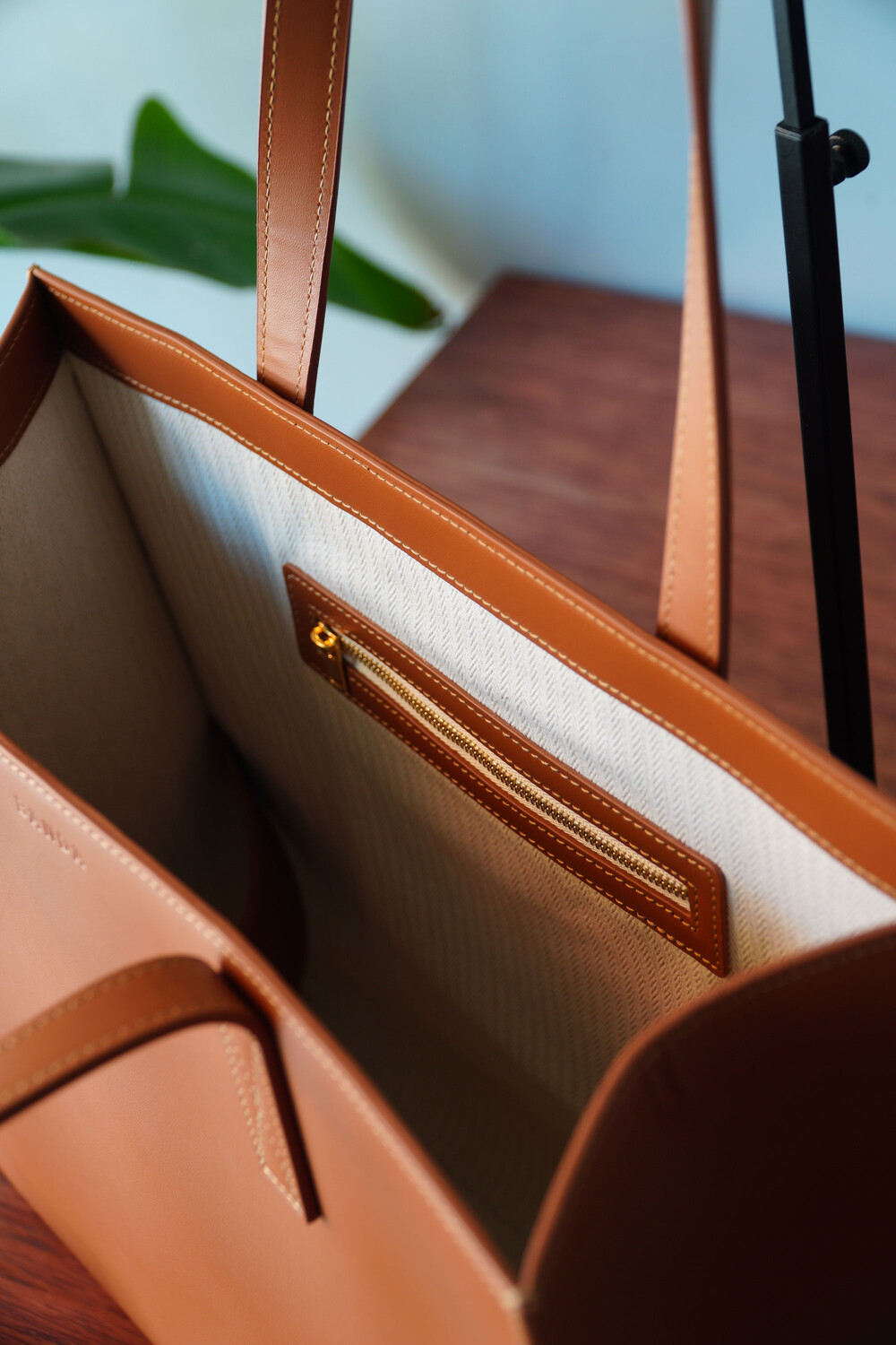 사각형태의 숄더쇼퍼백인 멜로백 입니다. 유행타지 않는 심플한 형태의 디자인이며, 안쪽에는 지퍼포켓과 포켓이 있어 실용성 있게 사용이 가능합니다. 또한 내부엔 텀블러 홀더가 있어, 개인 텀블러를 휴대할 수 있습니다. 안감은 헤링본 안감을 사용하여 고급스러우며, YKK 사의 지퍼와 슬라이더를 사용하였습니다. Art.Steen 이란 카프스킨을 사용했고, 스크래치와 오염에 강한 특징이 있습니다.