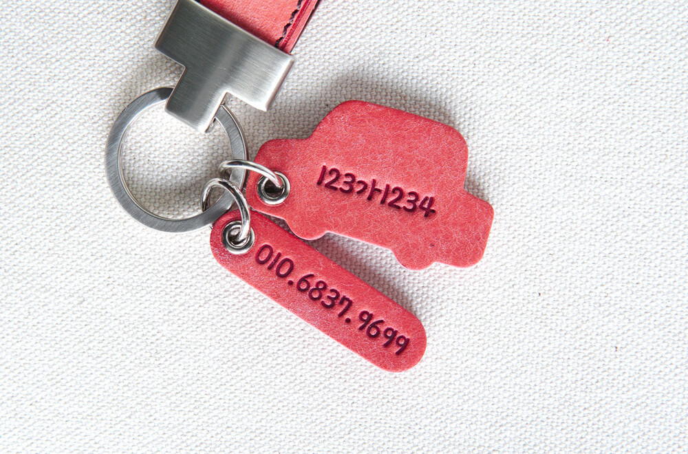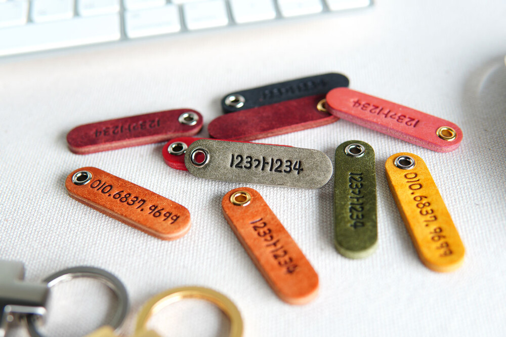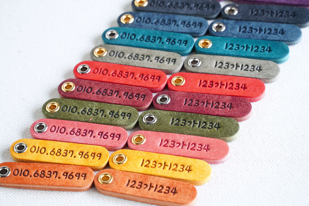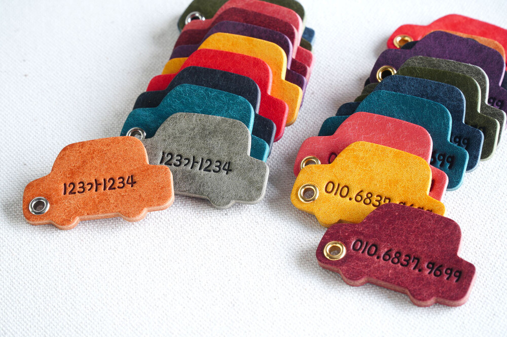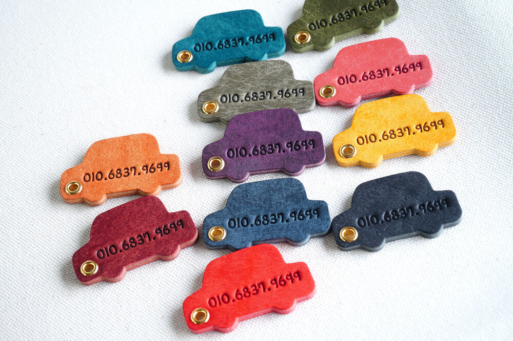 자동차 번호 or 연락처를 각인할 수 있는 가죽 라벨 태그